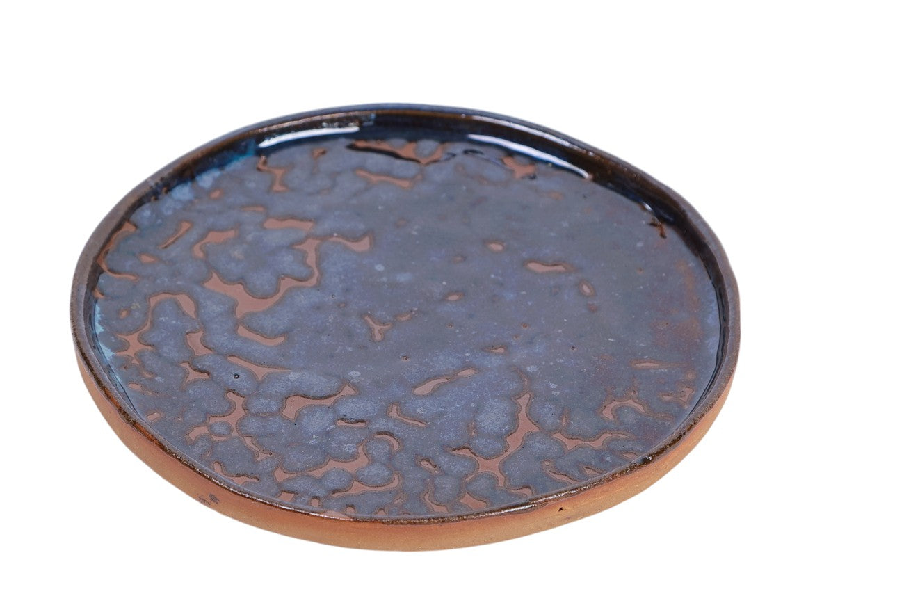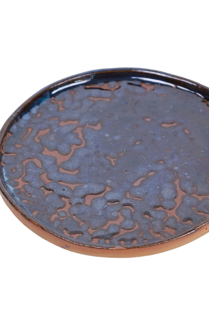 Prato Grande em Cerâmica Leopardo Azul Petróleo Orgânico